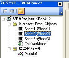 (3)プロジェクトエクスプローラから「Sheet2」を開きます