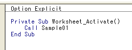 これで完了です。Sheet2をアクティブにすると、Sample01が実行されます。