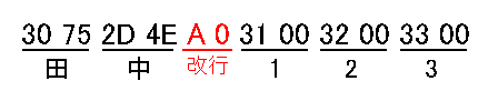 Alt+Enterキーで改行した場合とは違い、今度は「D 0 A 0」のように0D 0Aの改行コードが入力されているのがわかります。