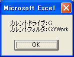 "カレントフォルダ:" & CurDir & vbCrLf & _