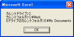 "Eドライブのカレントフォルダ:" & CurDir("E")