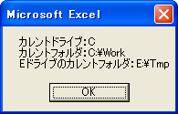 ChDir "E:\Tmp" ''Eドライブのカレントフォルダを変更する