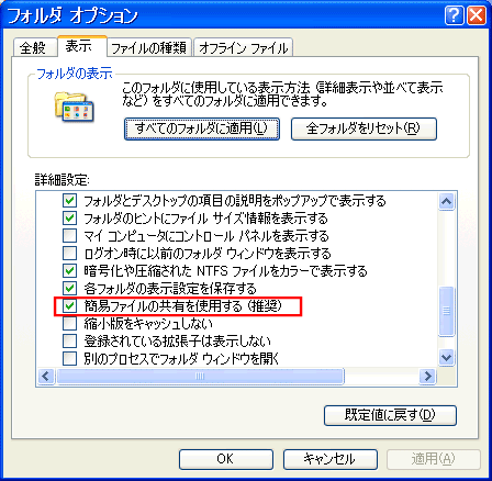 すみません 簡易ファイルの共有を使用する(推奨)の項目がないのですが・・・