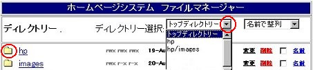 複数のディレクトリ(フォルダ)を作っている場合、目的のディレクトリ(フォルダ)に移動できます。 ディレクトリのアイコンをクリックするか、「ディレクトリ選択」の横の▼をクリックし、目的のディレクトリの名前をクリックすると、そこへ移動できます。 |
