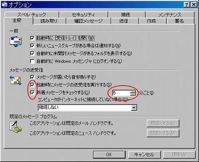 OE5.5では、相手がメールを開封したかどうか、確認するメッセージを送る機能がありますが、相手がそれに対応したメールソフトを使っているとは限りませんので、この機能はOFFにしたほうが賢明です。 「ツール」→「オプション」→「確認メッセージ」タブ→「開封確認メッセージの要求」のチェックを外す 「開封確認メッセージの返信」は、お好きなように・・・・・・ |