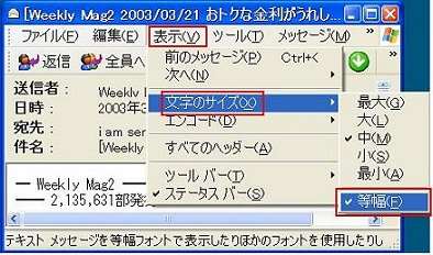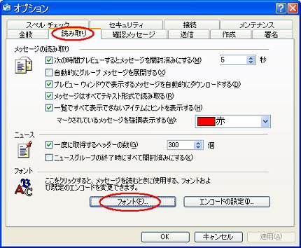 または、すべてのフォントをMSゴシック、またはMS明朝などにする。 1.OEを起動し、「ツール」→「オプション」を開く