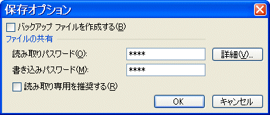 3.「保存オプション」が開いたら「読取パスワード」または「書き込みパスワード」を入力