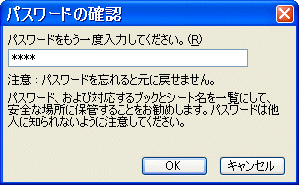 4.「パスワードの確認」がでるので再度入力 【注意】パスワードを忘れると開けなくなりますので十分注意してください