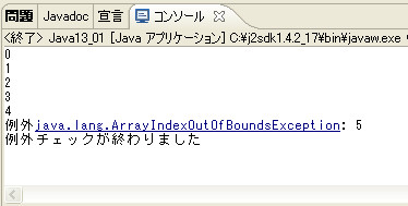 System.out.println("例外チェックが終わりました");