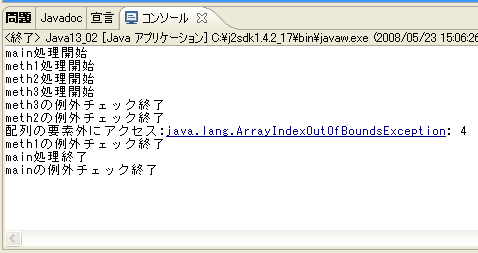 System.out.println("meth2の例外チェック終了");