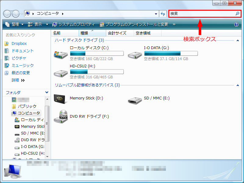 クイック検索とは、Vistaから追加された検索機能で、今いるディレクトリの中身を簡単かつ素早く検索できます。