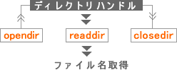 ディレクトリ内のファイルを読みこむ場合には、opendir 関数を使ってディレクトリを開き、ディレクトリハンドルを取得します。