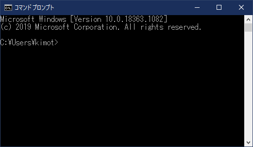 コマンドプロンプトを実行すると、以下のようにコマンドプロンプトが立ち上がります。