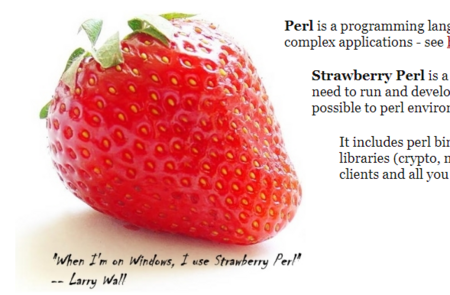 Strawberry Perl(ストロベリーパール)は、WindowsでのPerlディストリビューションのひとつです。Strawberry Perlは、インストールが簡単で、C言語のコンパイラ「MinGW」、CPANモジュールインストーラー「cpanm」、画像処理などで良く使うCライブラリが添付されています。