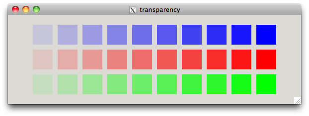 The first example will draw ten rectangles with different levels of transparency.