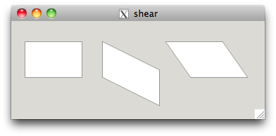 In this code example, we perform two shear transformations. For a shear transformation, we do not have a special function.