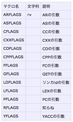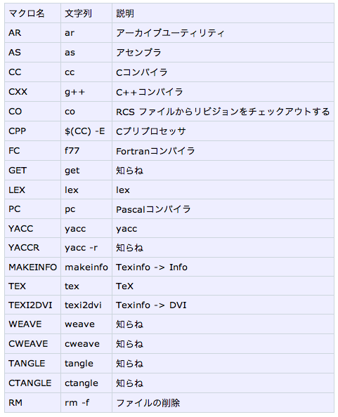 ここでは “CC” というマクロを “gcc” という文字列で再定義している. また, “RM” というマクロをそのまま使用している.