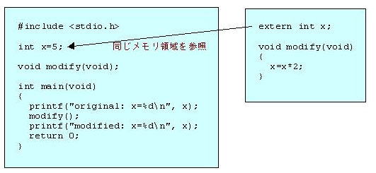 extern int x; // 大域変数 x の宣言