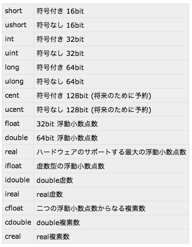 数値型は C よりも豊富に揃っている.