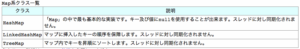 例として [HashMap] の場合の書式は: