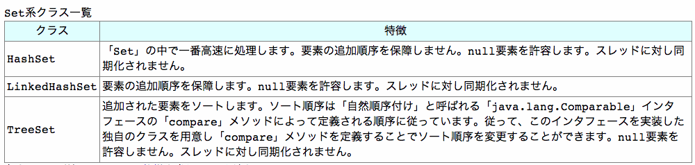 // ts1.add(null); // null を追加すると例外 (ソート時に NullPointerException) が発生する