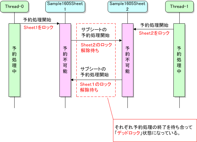 お互いにシートのロック解除待ちで処理が止まってしまっている. 次のようなイメージとなる.