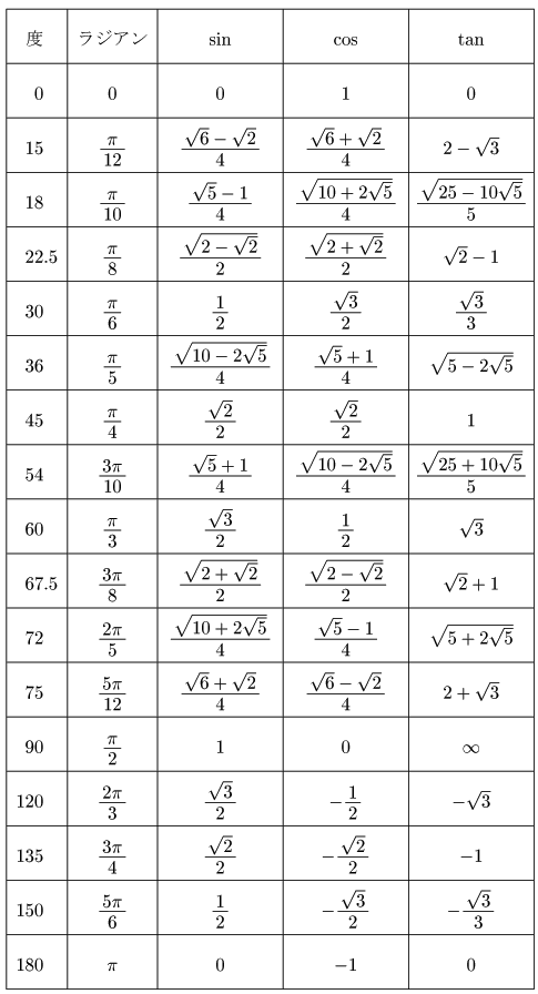 特殊な角の三角関数値