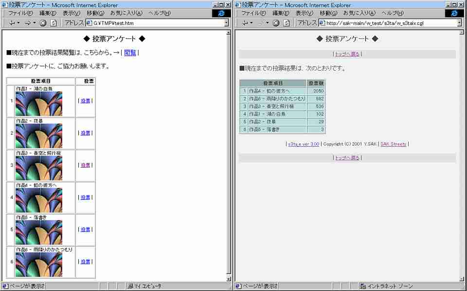 | 投票アンケート CGI Perl | ||||||