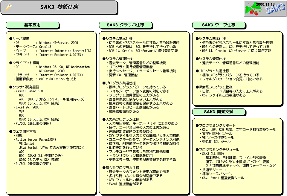 | 【イントラネットプラットフォーム】 | IIS、ASP、JSP、Perl、Oracle、PostgreSQL | |||||