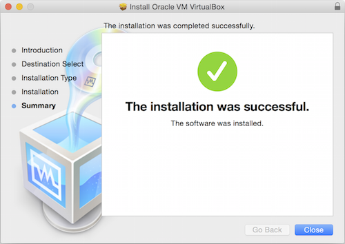 インストールが終わってから Close をクリックしてインストーラーを閉じる。