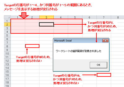 実際の処理は、こちらが設定したセル範囲のときのみ実行させるってわけだね。