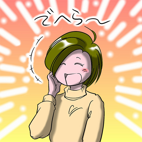 岬さんは頬を赤くして、デヘラ〜と笑います。