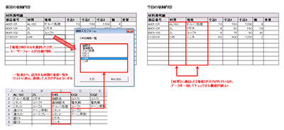 ・規格入力フォームのリストで、選択された値をシートに書き戻す