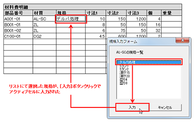 選択した規格が、アクティブセルに入力されればオッケーだ!」
