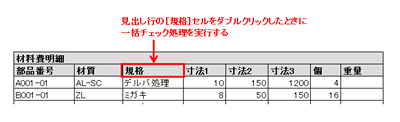 規格のチェックだから、見出し行の"規格"セルをダブルクリックしたときに、