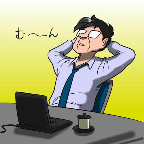 岩田部長は腕を組み、む〜〜ん、とつぶやきながら天井を見上げます。