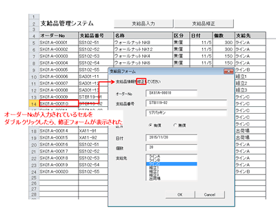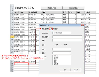 続けて、オーダーNoが入力されているセルをダブルクリックします。