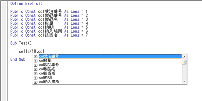 Public Const col受注番号 As Long = 1