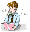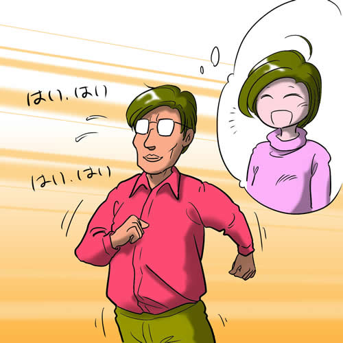 彼は立ち上がると、小走りにドアの方に駆けて行きました。