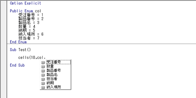 八木くんが、「cells(10,col.」の「.(ピリオド)」まで入力すると、