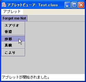 アプレットの場合は JApplet.setJMenuBar() メソッドで