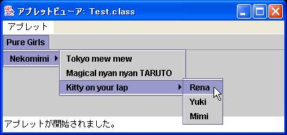 これは、JMenu に対して JMenu を追加しているプログラムの例です