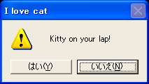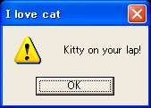 MessageBox.Show("Kitty on your lap!" , "I love cat" ,