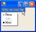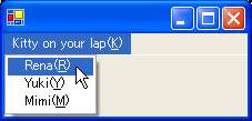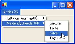 mi.MenuItems.Add("Kitty on your lap(&K)" , kitty);