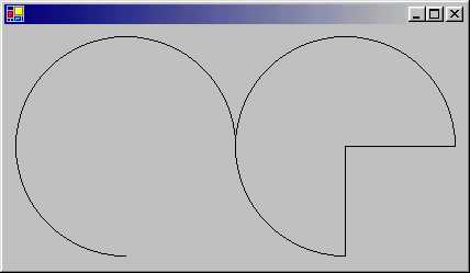このプログラムは、DrawArc() と DrawPie() の2つのメソッドを使って