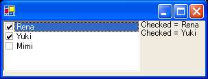 このプログラムは、チェック済み項目をリストの横に表示します