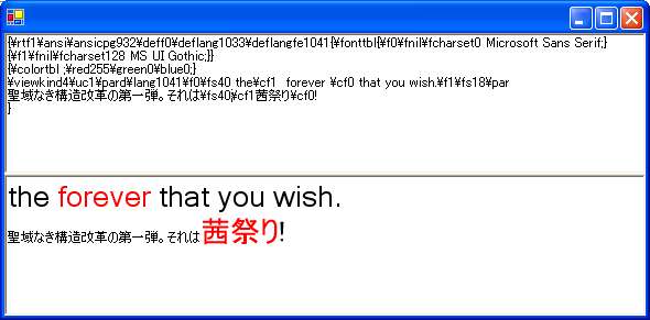 このプログラムは、カレントフォルダ内の test.rtf ファイルを読み込みますusing System;