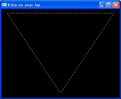 このプログラムでは 0xF0F0 をパターンとして破線で三角形を描画しています