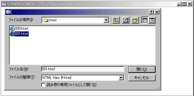 このプログラムは、上のファイルを読み込むダイアログボックスのプログラムを改良したもので
