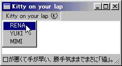 /*resource.h*/ #define IDM_RENA 10000 #define IDM_YUKI 10001 #define IDM_MIMI 10002
